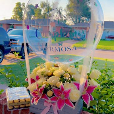 Los cumpleaños, la graduación, el bautizo o sencillamente algo diferente, también están las rosas con globos (Los precios cambian por temporada)