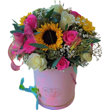 Un Ramo buchón en cilindro, elegante y coqueto para que recordarle lo mucho que es en nuestra vida. (Los precios cambian por temporada)